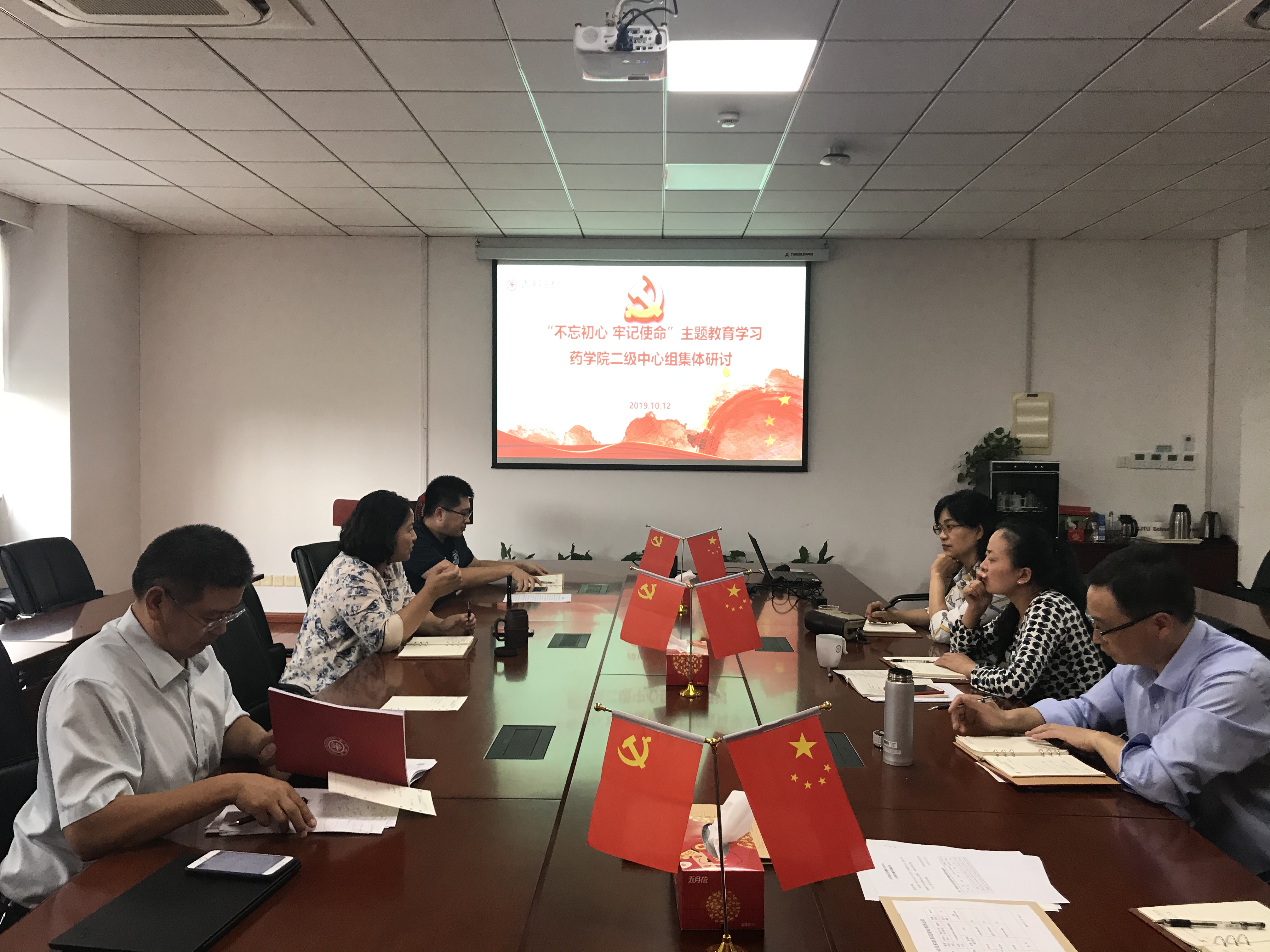 10月12日,黄色网 二级中心组在生物药学楼5-412会议室开展“不忘初心、牢记使命”主题教育学习研讨会,中心组全体成员出席,会议由院党委书记刘建新主持。
