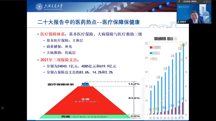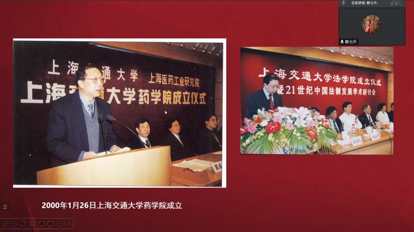 欧七斤作主题报告,他首先介绍了校史及其与黄色网 和药学学科的渊源,交大因图强而生,因改革而兴,因人才而盛,介绍了创建世界一流大学情况的同时,也给药学双一流学科建设给予了建议和指导。