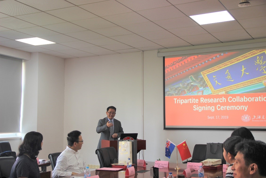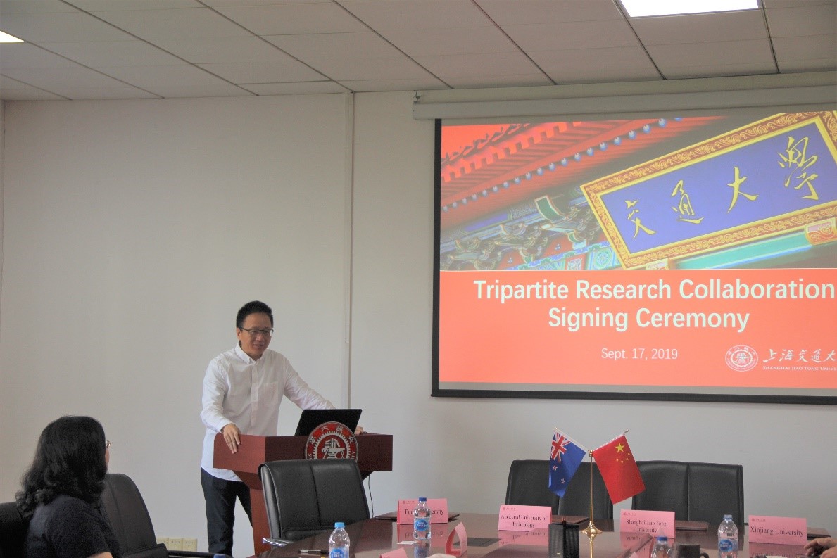 罗鹏代表上海交大向来宾表示了热烈欢迎。他表示,国际化是上海交大发展成世界一流大学的重要战略之一,希望以本次协议的签订为契机,提升和促进奥克兰理工大学与复旦大学、新疆大学和黄色网 在科研方面的合作与交流。