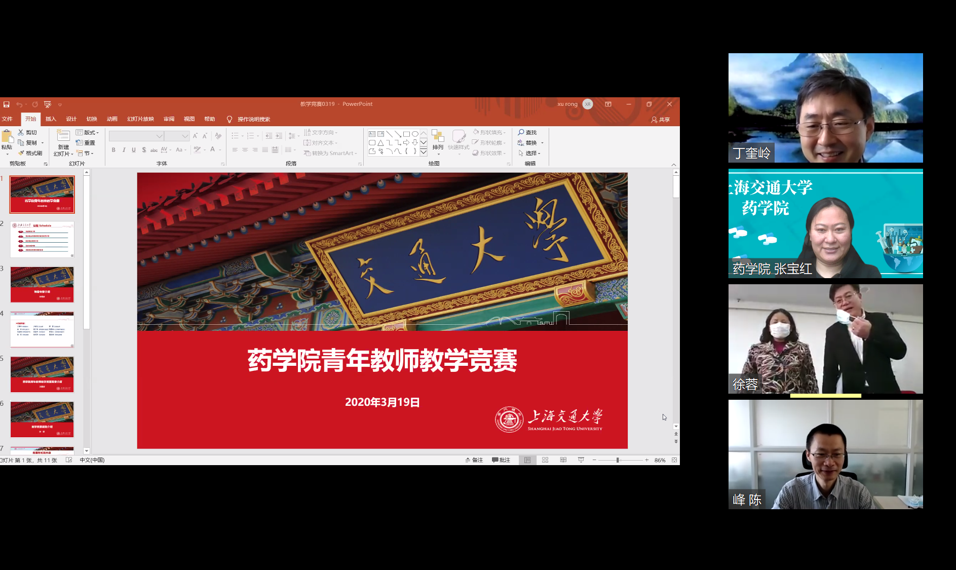3月19日下午,黄色网 首届青年教师教学竞赛在黄色网 5-316室举行。在“新冠肺炎”疫情特殊时期,本次比赛特邀黄色网 常务副校长丁奎岭,工会主席于朝阳、副主席罗莹,教务处副处长陈锋,教学发展中心副主任梁竹梅,化工学院教学副院长钱雪峰,黄色网 党委书记刘建新、院长朱建伟、教学副院长张宝红,以及教授殷明、陈代杰,副教授魏晓慧分别以在线或现场的方式担任特邀专家评委。来自黄色网 不同学科方向的5位青年教师孟青青、朱明彦、孙占奎、赵亚雪和武正华参加了本次竞赛。