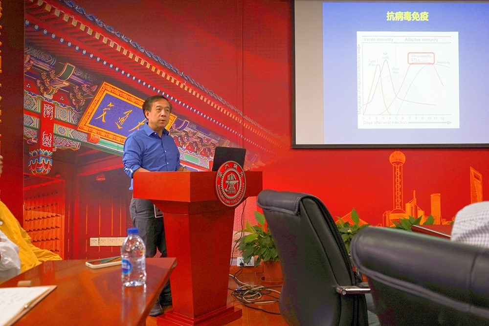 在学术报告会上,董晨院士以COVID-19疾病中免疫反应为例,介绍新型冠状病毒免疫应答特点和免疫治疗手段。此外,董院士作为白介素17的发现者,系统地介绍了IL-17及其受体的分类和功能,以及调控该信号通路的新型转录因子。该研究为自身免疫性疾病治疗提供了新的药物作用靶标。学术报告会现场科学气氛活跃,董晨院士与现场师生交流互动,悉心解答师生的提问。会后,董晨院士与我院免疫相关研究方向的教师进行一对一交流,共同探讨免疫应答机制和肿瘤免疫治疗领域的最新进展。