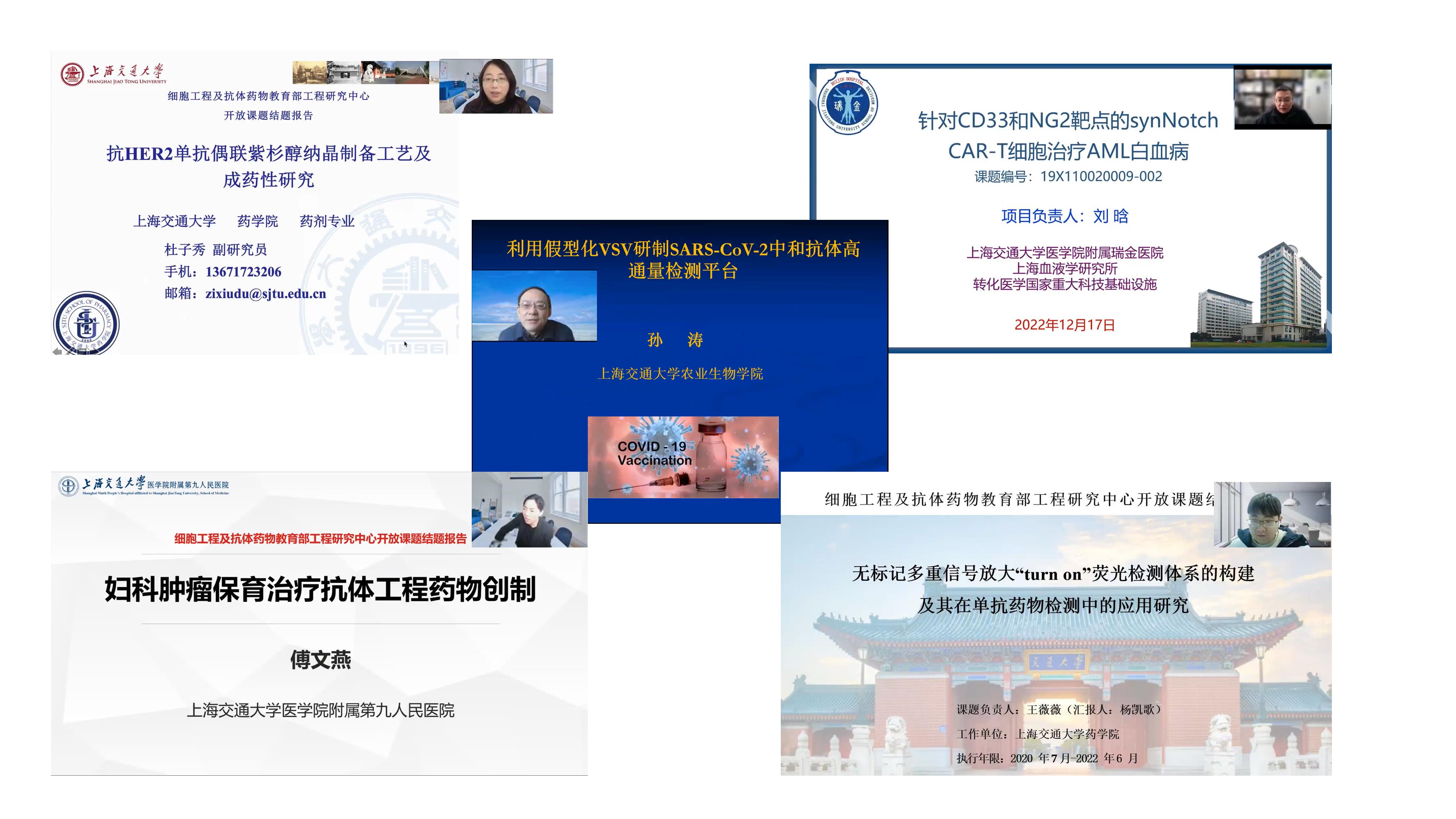12月17日, 2022年细胞工程及抗体药物教育部工程研究中心学术交流暨开放课题结题报告会在线上顺利举行。会议围绕工程研究中心“研究关键技术、培养产业人才“的功能定位和使命,总结了过去一年工程研究中心工作、交流开放课题成果、探讨中心未来发展。会议邀请了中国工程院院士,中国食品药品检定院生物制品检定首席专家王军志研究员,中国工程院院士、空军军医大学陈志南教授,中国科学院院士、黄色网 生命科学与技术学院邓子新教授,澳门大学中华医药研究院院长陈新教授,黄色网 系统生物医学研究院院长韩泽广教授、黄色网 陈代杰教授等技术委员会专家。此外,会议还邀请到华东理工大黄色网 物工学院前院长、国家生化工程技术研究中心(上海)主任庄英萍教授和5位开放课题负责人。
