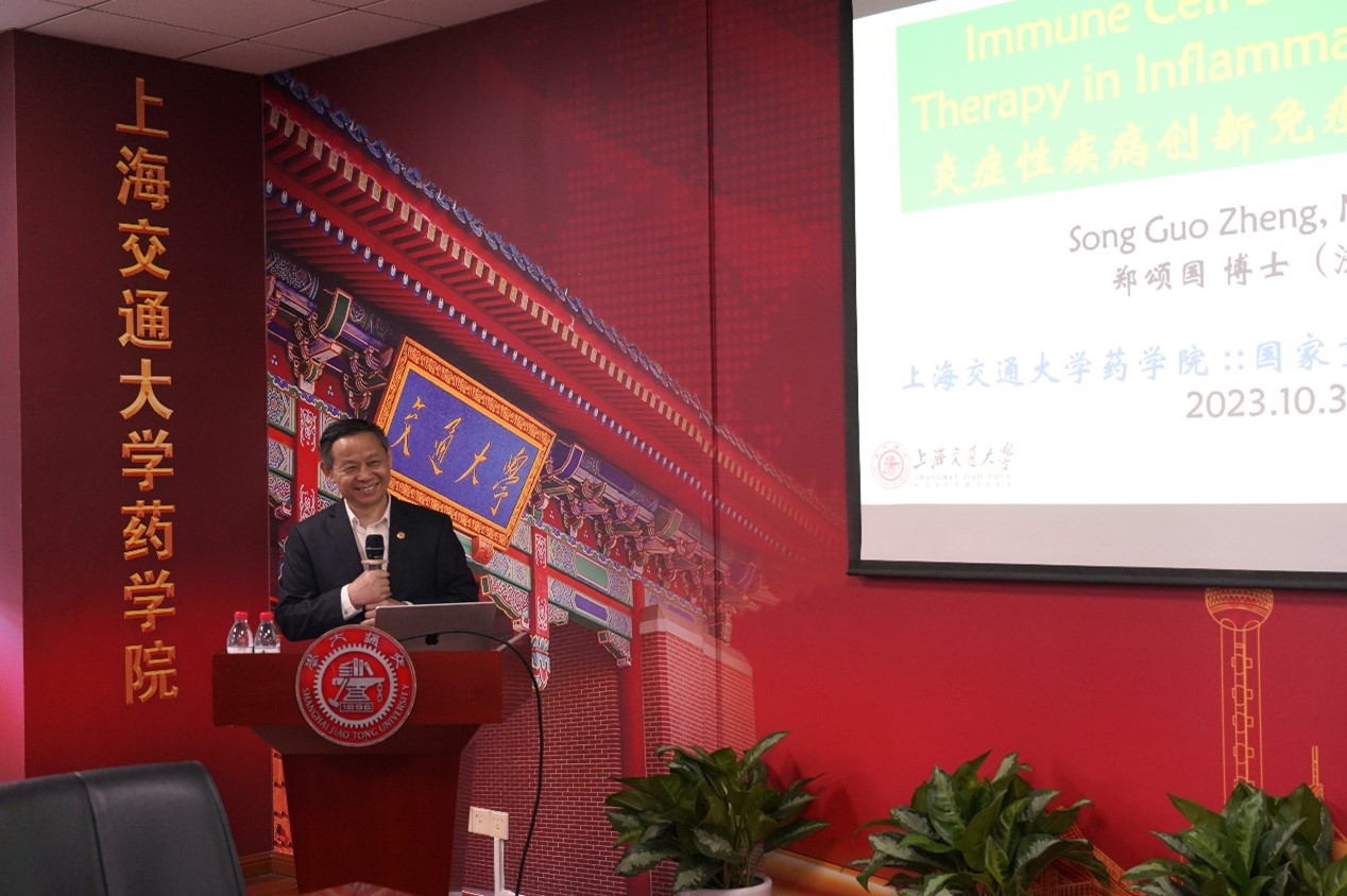 聘任仪式结束后,郑颂国教授作题为《炎症性疾病创新免疫治疗新进展》的学术报告,报告主要介绍了调节T细胞的发现和治疗炎症性疾病的作用和机制、炎症性疾病的新靶点干预治疗。现场交流环节气氛热烈,与会师生积极提问并与郑颂国教授进行深入讨论。郑颂国教授以深入浅出的语言解答了与会者的疑惑,使大家对炎症性疾病的治疗有了更深入了解。他还分享了自己多年来在药学领域的研究经验和心得,鼓励年轻学者要有创新精神和勇于探索的精神,为药学事业做出更大的贡献。