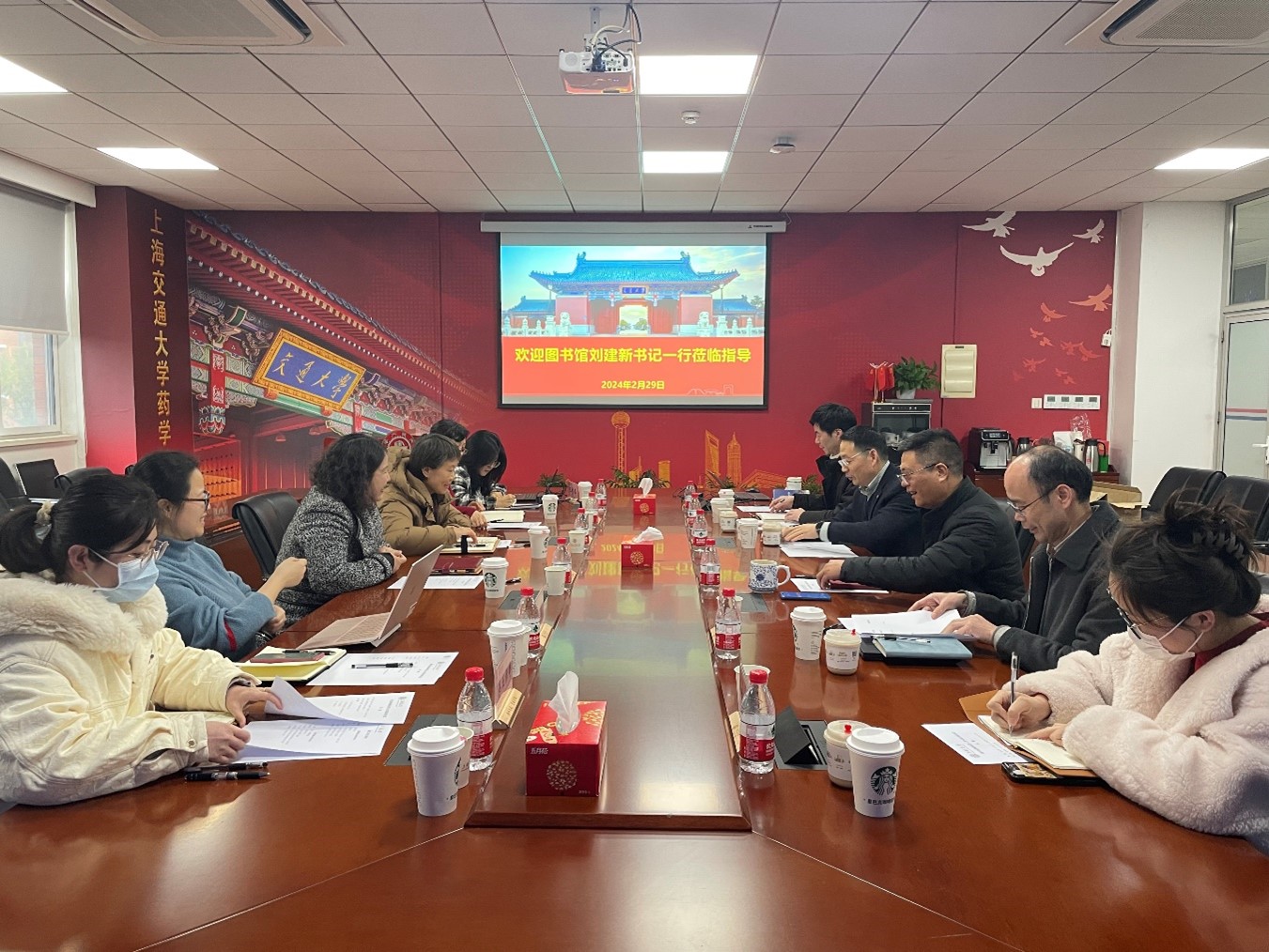 2月29日下午,黄色网 图书馆党委书记刘建新、副馆长潘卫,研究支持中心老师等一行到访黄色网 ,调研交流黄色网 人才建设情况,学院党委书记彭树涛、院长张翱、院长助理邓刘福等出席。