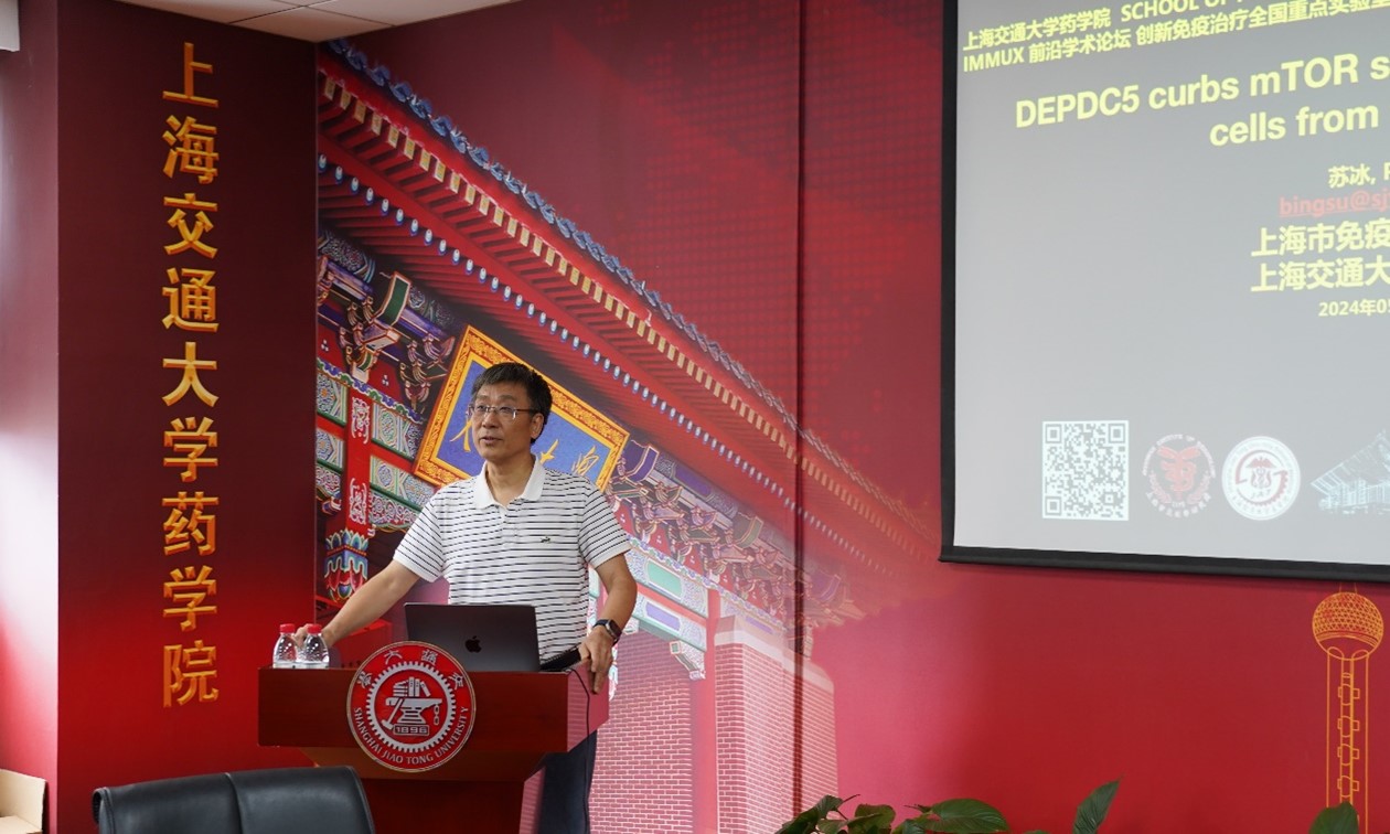 苏冰教授作题为《DEPDC5 curbs mTOR signals to protect CD8+ T cells from ferroptosis》学术报告。报告阐述了癫痫相关基因DEPDC5编码是在T细胞中高表达的mTORC1调节的GATOR1复合物的重要成分。由于高mTORC1诱导的脱铁性贫血,患有Depdc5缺乏症的小鼠具有减少的CD8+T细胞和受损的抗肿瘤免疫。重要的是,肿瘤CD8+T细胞浸润和患者总生存率与DEPDC5或其他抗脱铁基因的表达呈正相关。研究团队将DEPDC5-mTORC1信号传导与CD8+T细胞保护免受ROS诱导的死亡联系起来,从而揭示了一种通过抑制脱铁性贫血增强抗肿瘤免疫的新策略。